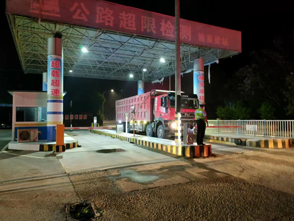 民警對過路車輛進行超限檢測。北碚區公安分局交巡警支隊供圖