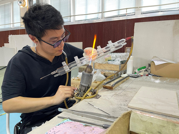 技工手工組裝器皿。夏祥洲攝