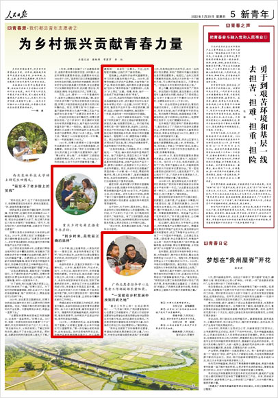 本版推出3位青年志愿者的故事,講述他們在助力鄉村振興過程中的付出與收獲。他們中有人對農民開展生產技術幫扶,有人通過電商直播將農產品銷出大山,還有人用心扶貧濟困、關愛留守兒童……他們為鄉村振興注入青春動能,讓青春之花綻放在祖國最需要的地方。