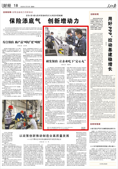 “這個保險項目,讓我們更有底氣去搞研發、做創新!眹译娡哆h達環保工程公司財務總監李偉口中的保險項目,是國家首臺(套)重大技術裝備保險,通過優化保險運行機制,加快重大技術裝備研發推廣應用,成為企業發展的“穩定器”。