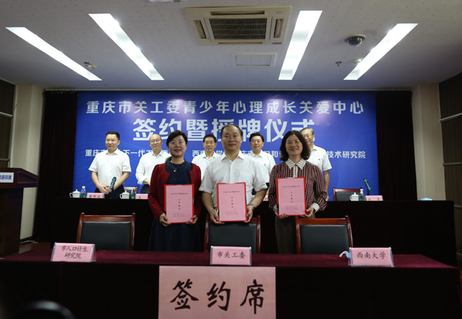 人民網重慶5月31日電 5月31日,“重慶市關工委青少年心理成長關愛中心”簽約暨授牌儀式在市人口計生研究院舉行,該中心由市關工委、西南大學、市人口計生研究院三方共建,關注青少年心理健康教育問題。