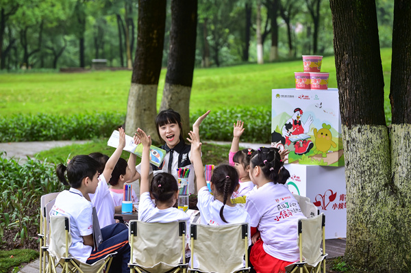 觀鳥結束后,“小候鳥”們參與了一場草坪讀書會。重慶肯德基供圖