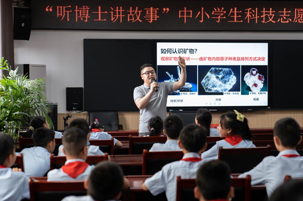 “科技活動周”期間,科普團教師董夢瑤和劉河清來到仁睦小學開展了題為“手可摘星辰”和“礦物巖石的奧秘”科普講座。董夢瑤系統講述了人類對飛行的探索歷程以及航空航天的前沿科技知識,結合“乒乓球飛行”小實驗生動地闡釋了空氣動力學原理;劉河清利用大量的礦物、巖石、化石等實物標本和地質工具,講述了礦物、巖石的基本概念,闡釋了礦物的科學鑒別方法。