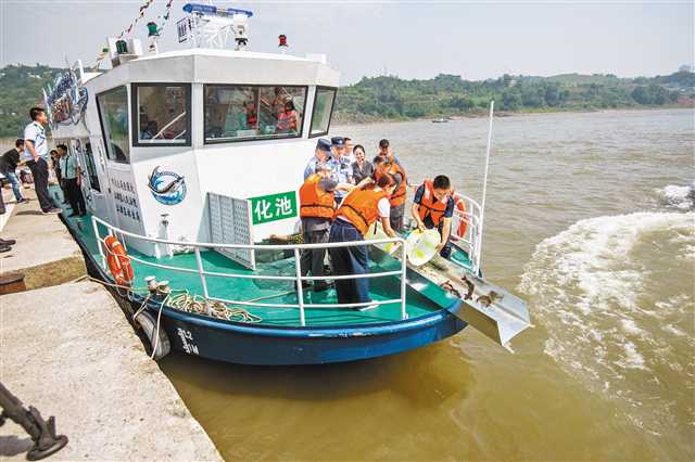 當天上午,記者在江津區濱江路米幫沱碼頭看到,江邊?恐凰野咨≥喆,船頭設有“馴化池”,船身印著“保護珍稀特有魚類”幾個大字。原來,這就是由江津區法院、市珍稀特有魚類國家級自然保護區管理處、江津區林業局共同建設的收容救護中心。
