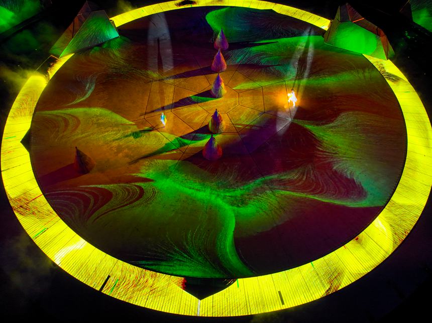 聲場設計方面,全部采用5.1聲道錄制輸出,能實現電影院的環繞音響效果;另外,為充分展現龍舞魅力,我們將劇場設計為一個360°的環形劇場,而觀眾席,則是一個180°的環形看臺,將劇場半含在里面,其互動性、沉浸感更強。