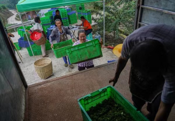 附近加工企業進村收購村民們采摘的花椒。永川區委宣傳部供圖