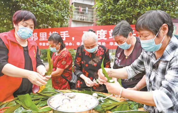 6月2日,華鎣市華龍街道和社工服務站,在射紅廟小區聯合開展“鄰里攜手,歡度端午”活動。180多位居民通過包粽子、品粽子和拉家常等形式,在歡樂祥和的氛圍中,共同慶祝端午節。