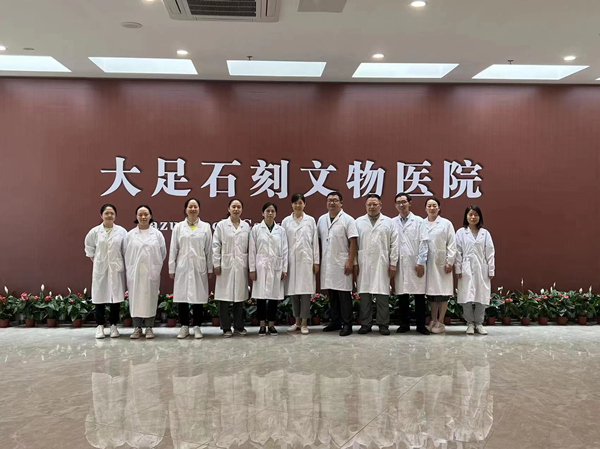 文物醫院,顧名思義就是專門為文物看病、修復文物的地方。大足石刻文物醫院坐落于大足石刻游客服務中心二層,占地面積近1600平方米,立足大足、面向西南、輻射東南亞,主要開展大足石刻保護科學技術的研究與攻關,傳承、創新、引進石質文物保護修復技術,指導大足石刻保護修復工作。