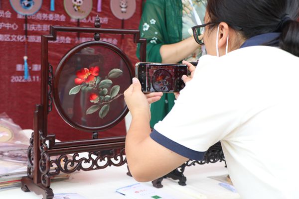 精美刺繡引得市民駐足。潼南區委宣傳部供圖
