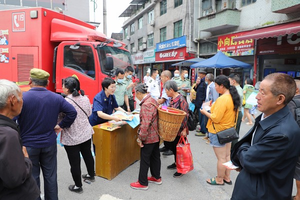 活動中,消防宣傳人員在集鎮中心位置設置消防宣傳咨詢點,擺放宣傳知識展板,利用消防宣傳車循環播放火災警示教育片和消防公益廣告,以案說法,用通俗易懂的表達方式向群眾講解家庭防火須知、家庭電器使用注意事項、發生火災后如何逃生、如何使用滅火器、如何撥打“119”報警等常識。