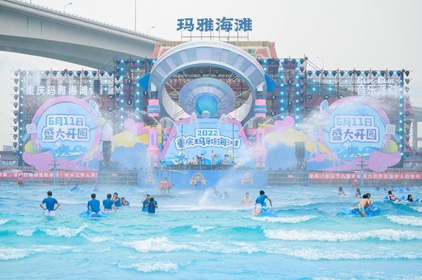 人民網重慶6月12日電 (馮文彥)11日,重慶瑪雅海灘水公園舉行了盛大的開園儀式。千名“藍精靈”粉絲和玩水達人齊聚現場,拼出藍白兩色“BLUE BLUE”邀山城市民今夏一起歡樂開浪。