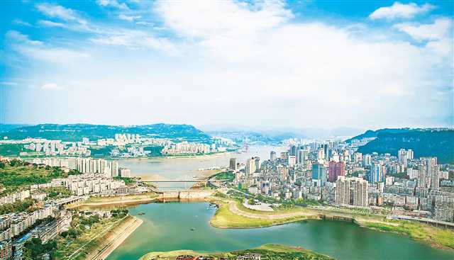 藍天白云下的萬州城區風光美如畫。(攝于六月十三日)記者 齊嵐森 攝\視覺重慶