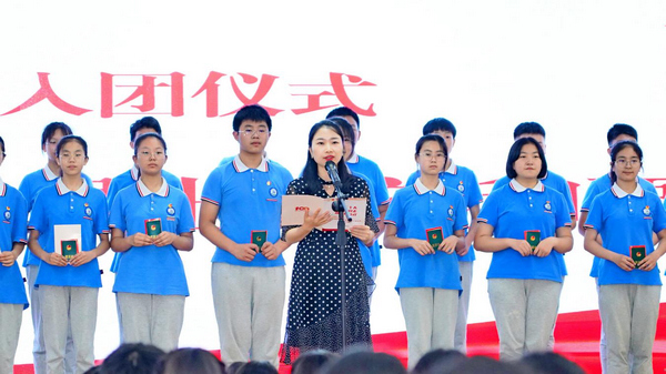6月17日,2022年巴南區標準化離隊入團儀式示范活動在巴南實驗中學舉行,年滿14周歲的260名少先隊員唱隊歌、行隊禮,為自己的少先隊生涯畫上圓滿的句點。隨后,25名優秀的離隊少先隊員面對團旗,莊嚴宣誓,光榮地加入了中國共產主義青年團,展現出學子風華正茂、朝氣蓬勃的良好精神風貌。