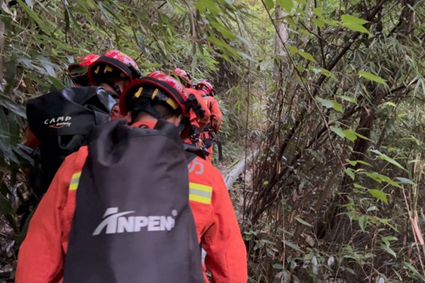當晚7點24分,消防救援人員到達被困人員所在山溝的山崖頂上,山崖高約200米,坡度較大,坡上滿是碎石,人經過的時候隨時有石塊向下滑落,且山坡上樹木、藤蔓茂盛,無路可通向山溝底部,F場救援編隊指揮員決定先下到山溝勘測陡坡地形并制作救援方案。約一小時后,消防救援人員到達崖底河溝,小心將被困人員轉移到擔架上固定好后,消防救援人員與現場人員一起對被困人員進行轉移。