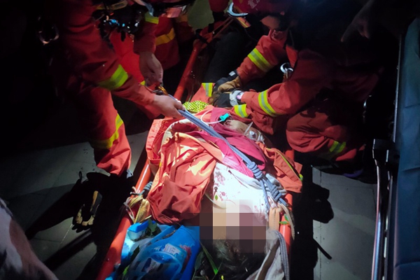 6月16日凌晨0點,在消防救援人員與多方救援力量的協同配合下,成功將困人員轉移到安全地帶。經現場醫務人員初步檢查,被困女子身體多處骨折,意識較為清楚,無生命危險。隨后,傷者被送往醫院進行救治。(柳洋)