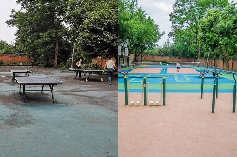 居民樓前的梯坎被挖掉,修起了平整的院壩;破舊的花臺也被拆除掉一部分,留下了更多公共活動空間;小區外立面整治、管線整治、路燈安裝等工作也一一開展。