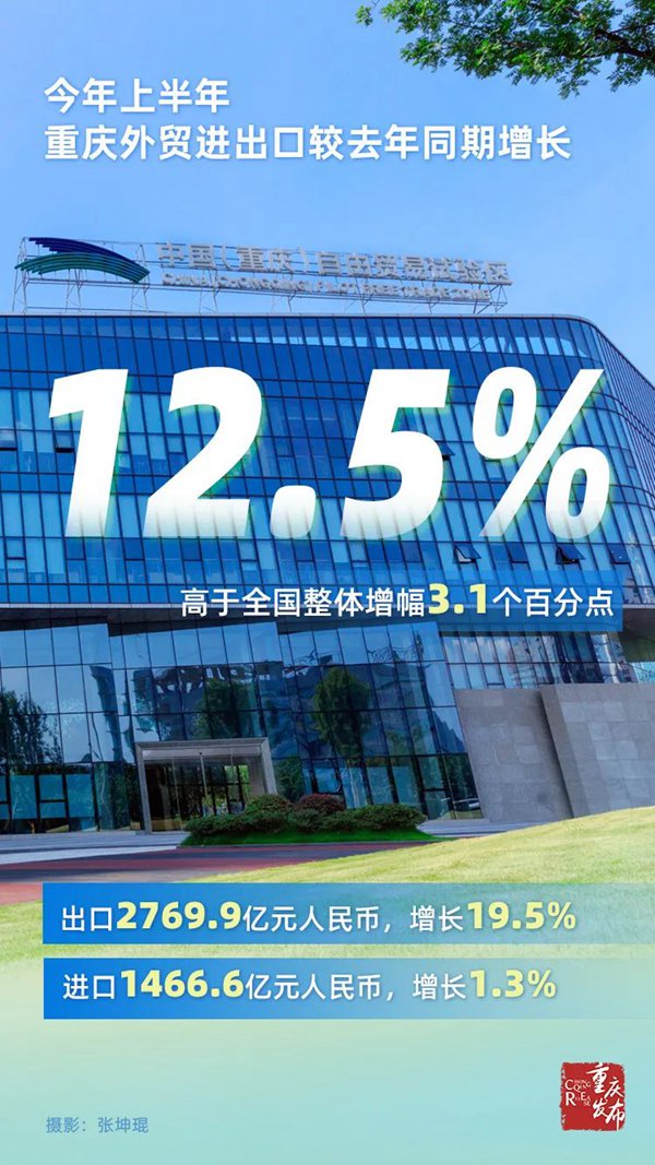 ●今年上半年,重慶加工貿易進出口1824.2億元,增長12.3%;