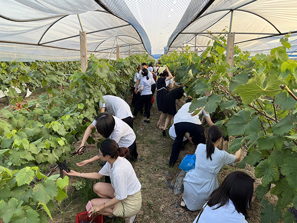 頂著40多度的高溫,潼南民生村鎮銀行愛心小分隊30余人到達百姓種養殖葡萄采摘園,幫助農戶采收葡萄,并主動認購葡萄1000余斤。同時,該行組織全行員工在朋友圈發出倡議,自發為葡萄園進行宣傳和推介,支持購買滯銷產品,助力開拓銷售新渠道。