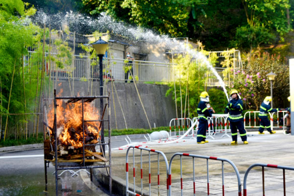 綦江區人民醫院義務消防隊員展示滅火過程。陶涵攝