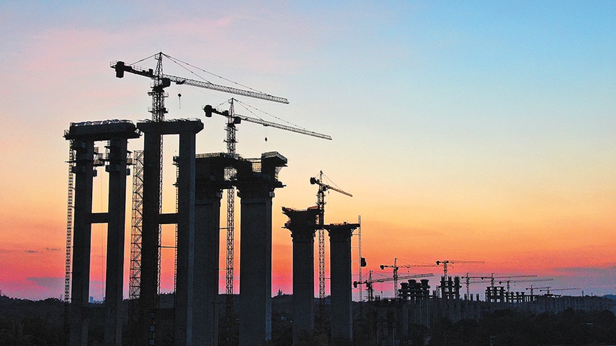 8月23日,渝遂高速復線北碚至銅梁段控制性工程——小安溪特大橋工地,工人正加緊進行橋梁上部結構施工。