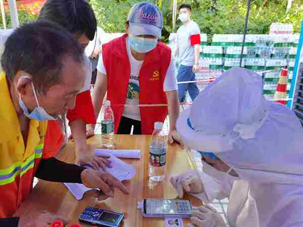 8月24日,燃氣北碚分公司青年黨員志愿者在為市民群眾登記核算檢測信息。重慶燃氣集團供圖