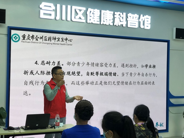 青少年常見心理問題及表現是目前大多數家庭共同關注的話題, 9月1日,合川區精神衛生中心心理服務中心主任唐家林在合川區健康科普館以“青少年心理問題及其預防”為主題,為30余名家長開展了專業而有趣的心理健康講座。