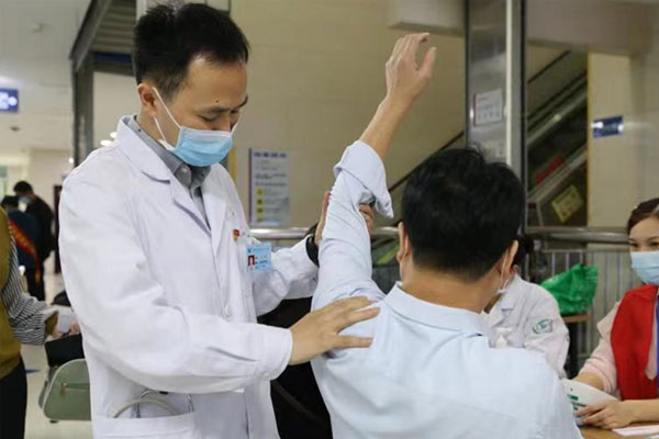 在康復醫學科(疼痛科)醫生咨詢臺前,醫生通過??茩z查,幫助患者找準疼痛的原因,為下一步接受治療提供指導作用。