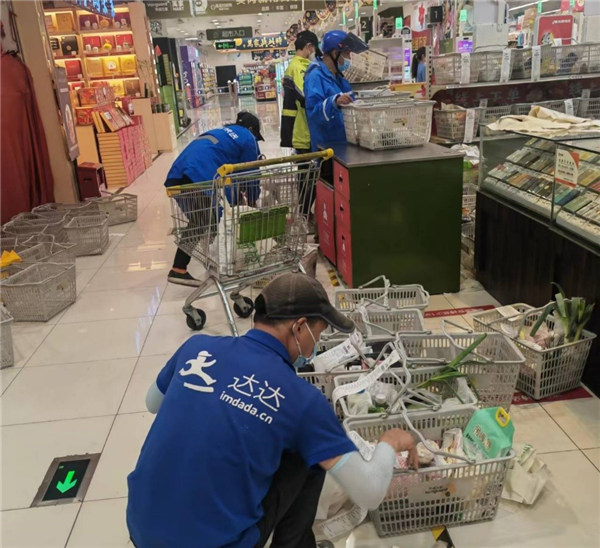 京東到家、小時購訂單量激增,工作人員正在揀貨配送。京東供圖