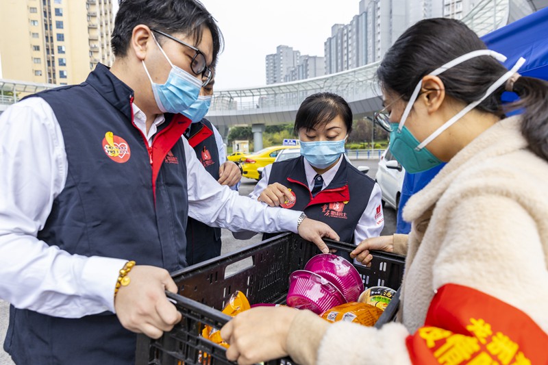 “這是防護服,這是消毒液,這是口罩……”在巴南區龍州灣街道,“雷鋒的士”志愿者廖財莉正忙著轉運物資,“這些東西都要送到交通卡口和社區,提供給做核酸采集的醫務人員和其他志愿者?!?/p>