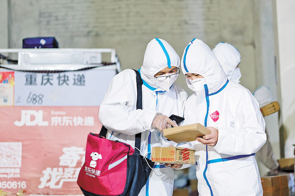11月30日,京東快遞南岸區營業部,快遞小哥在臨時組建的配送站清點快遞,準備發車送貨。11月27日,來自四川、貴州、云南的26名快遞小哥到達重慶南岸,經過相關檢疫后,僅用一天時間就臨時組建了一個配送站,開始當地的送貨。