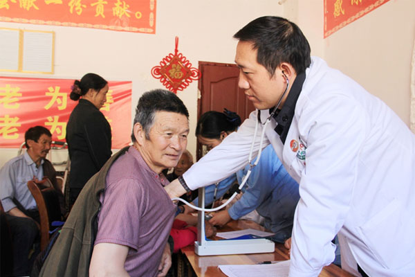 鄭云章到福利院義診(資料圖)。開州區人民醫院供圖