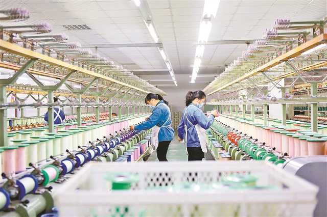 12月14日,黔江區工業園區花神絲綢紡織有限公司,女工在車間忙碌。年關將近,該公司加足馬力趕制海外訂單。特約攝影 楊敏/視覺重慶