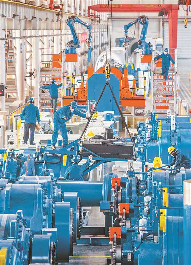 12月19日,位于兩江新區的中國船舶集團海裝風電股份有限公司重慶總裝廠,員工正忙著為明年的訂單裝配風電機組。經過復工后的全力沖刺,本月初,重慶總裝廠已完成全年目標任務。記者 張錦輝 攝/視覺重慶