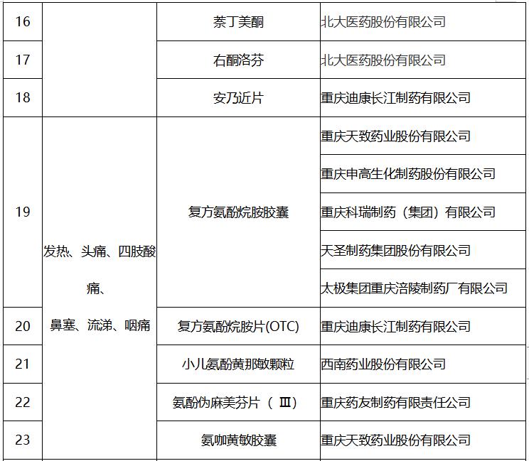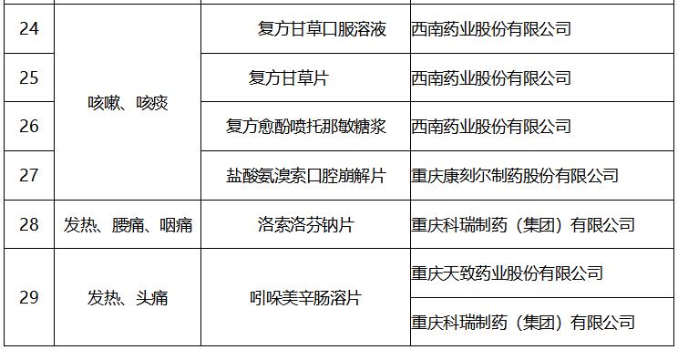 目錄結合全市重點醫藥企業新冠肺炎對癥預防和治療相關藥品信息,針對發熱、頭疼、咳嗽、咽痛等癥狀推薦29個地方化藥品種、48個地方中藥品種。