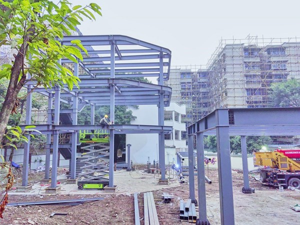 目前,兩幢建筑合計完成鋼結構安裝75噸,鋼結構主體已完工,下一步將進行樓承板及保溫層、墻面、細部構造等安裝。
