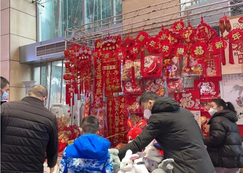 1月2日上午,記者來到重慶書城。步入書城1樓大廳,濃濃的節日氣息撲面而來。新年裝飾品展臺前,紅紅火火的傳統民俗文化產品吸引了不少市民駐足,精心挑選文化類年貨。