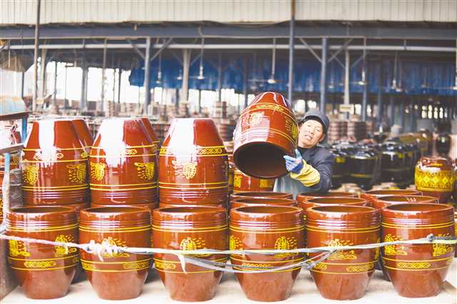 一月三日,梁平高新區的重慶天戈陶瓷有限公司,工人將生產的酒缸裝上運輸車。該區陶瓷生產企業加大技術創新,產品在國內大中城市供不應求,并銷往韓國、越南、緬甸、澳大利亞等國家。特約攝影 劉輝\視覺重慶