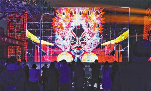 一月五日,九龍坡黃桷坪涂鴉街,中國·重慶首屆國際光影藝術節的燈光秀吸引了眾多市民前往觀看。本欄圖片均由記者崔力、鄭宇攝\視覺重慶
