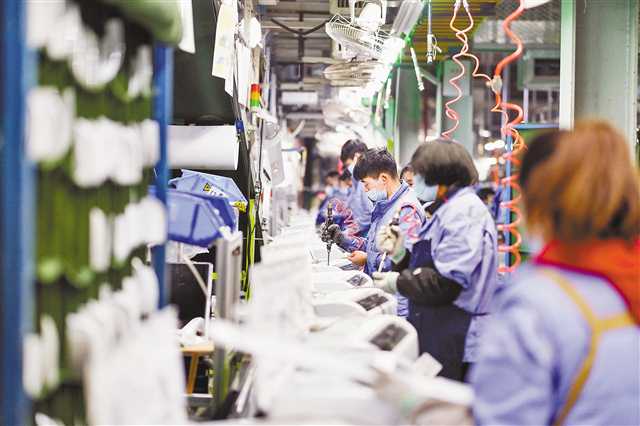 1月4日,南岸經開區重慶美的制冷設備有限公司生產車間里,工人正在趕工生產新年新訂單。新年伊始,該區各個企業開足馬力加緊生產,全力滿足市場需求,力爭實現新年“開門紅”。特約攝影 郭旭/視覺重慶