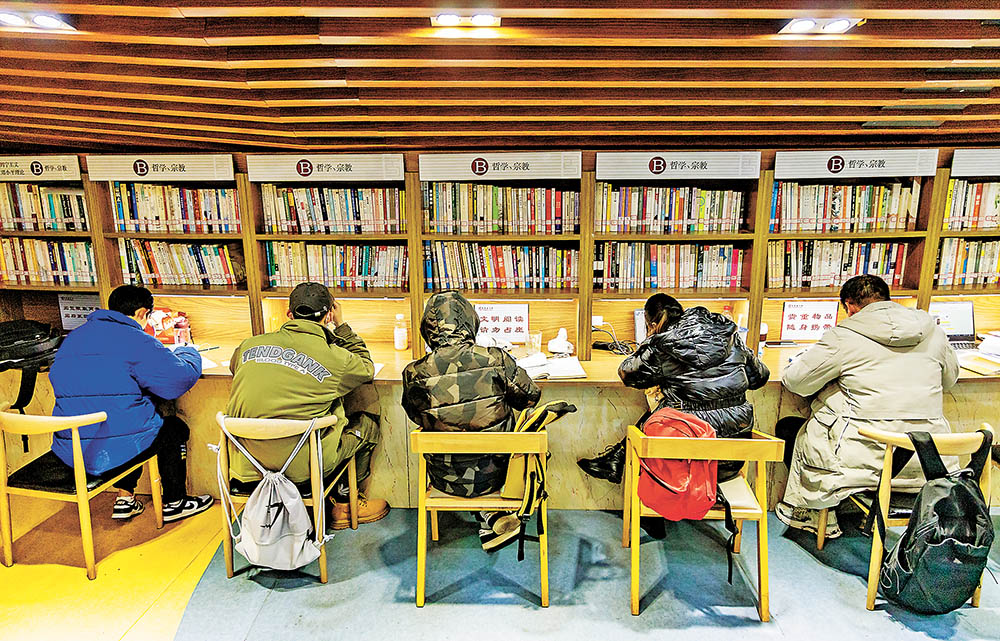 2月1日,重慶圖書館24小時城市書房,讀者正在認真學習。