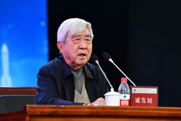 2月7日下午,戚老做客重慶八中,為800多名師生帶來題為《中國航天與航天精神》的專題講座,他用親身經歷講述了航天人矢志不渝的報國心、孜孜以求的強國夢,以及用青春甚至熱血鑄就的航天精神。