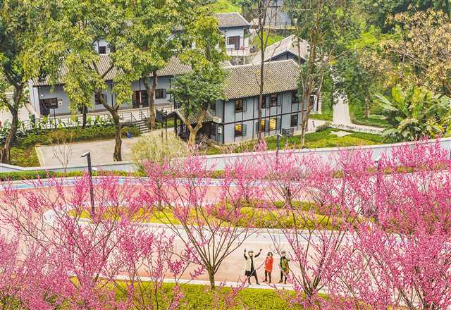 “山城特殊的地形,也讓喬木的群體景觀效果有了更大的發揮空間?!绷温斎Q,在平原城市市民只能以較少的角度賞花。但在重慶,成片成群的紅梅可以出現在坡坎崖、屋頂等立體綠化中,欣賞視角也不局限于平視,可以多角度觀賞,怎么看都美。