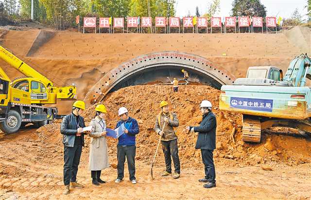 2月6日,成渝中線高鐵大足黃連堡隧道施工現場,重慶大足區、四川安岳縣紀委監委的干部在了解施工進展情況。