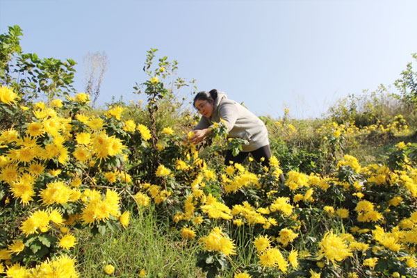 收獲季,黨員幫助村民采摘菊花。璧山區中醫院供圖