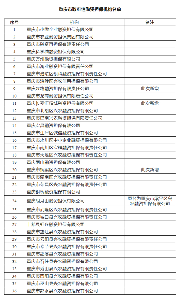 新增3家!重慶市政府性融資擔保機構增至36家