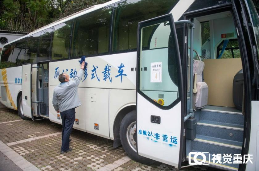 2月19日,渝中區佛圖關公園,工人師傅正在清潔移動公廁。記者 崔力 攝/視覺重慶