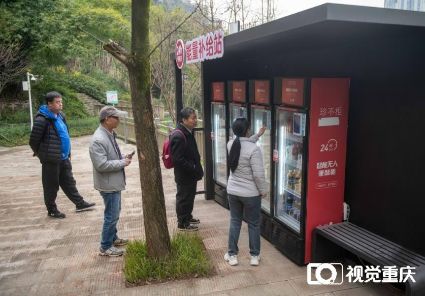2月16日,渝中區佛圖關公園,市民在“能量補給站”買水。記者 崔力 攝/視覺重慶