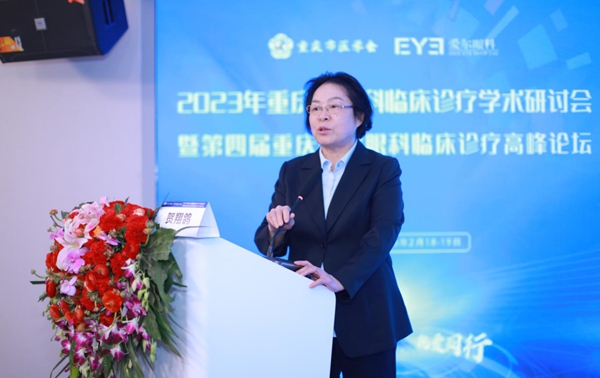 愛爾眼科重慶特區總院長兼重慶南坪愛爾眼科醫院院長賀翔鴿為交流會致辭。她指出,我國很多老年人正在遭受老花眼和白內障的雙重侵襲。還有很多常見眼病比如視網膜脫離、青光眼、黃斑部疾病等,嚴重影響相關群體的日常生活。賀翔鴿從開放創新、學術共享的角度,指出在白內障及相關眼病的防治上需要眼科行業同仁努力推動、形成更多的經驗及成果,獲得參會同道的廣泛認同。