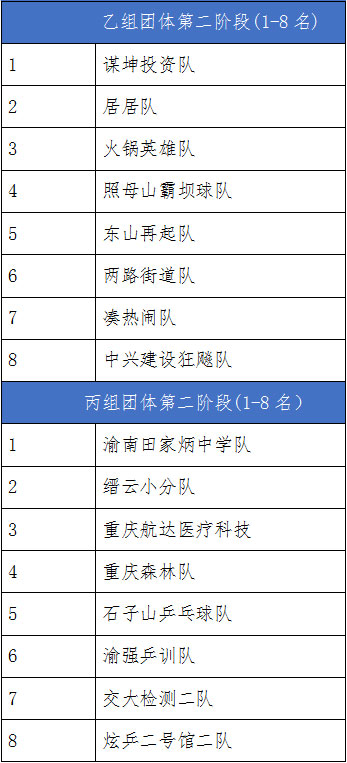經過激烈角逐,渝北業余乒乓聯賽乙組和丙組的成績出爐。(向詩佳)