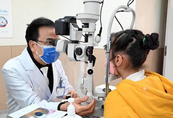 重慶愛爾眼科醫院(總院)院長陳茂盛為琪琪進行術后復查。重慶愛爾眼科醫院總院供圖